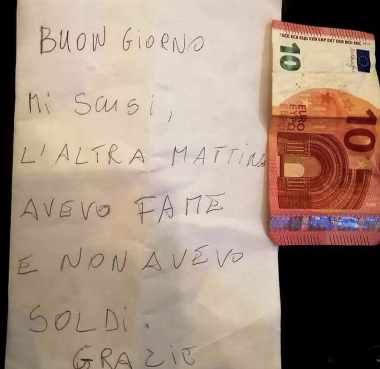 (Pistoia) Il proprietario di un bar ha trovato fuori dalla porta questo messaggio, segno di sincero pentimento e di grande serietà.